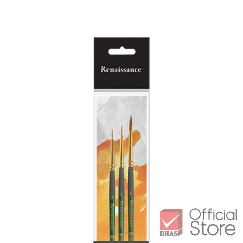 Renaissance พู่กัน พู่กันสีน้ำ พู่กันหัวกลม No.0, 2, 6 จำนวน 1 ชุด