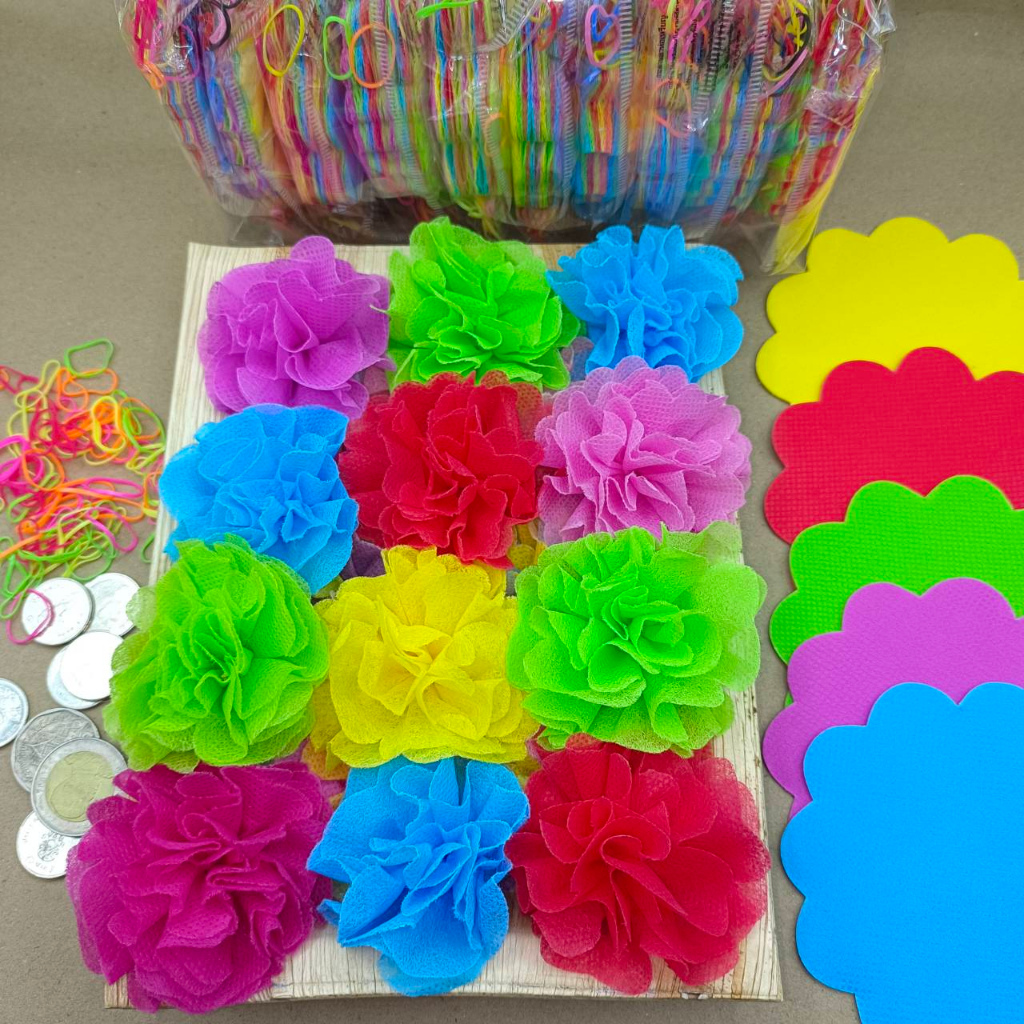 กระดาษสาห่อเหรียญโปรยทาน รุ่นคละสี1,000แผ่น พร้อมหนังยาง มี10ถุง ถุงละ100แผ่น ใช้พับใส่เหรียญโปรยทานงานทำบุญ งานบวช
