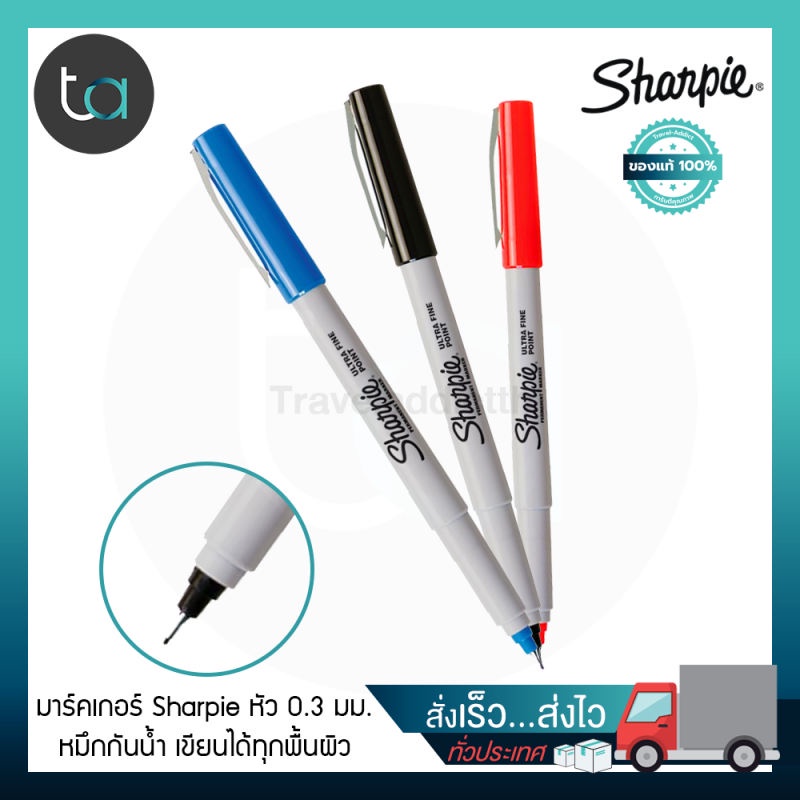 ปากกามาร์คเกอร์ Sharpie หัว UF 0.3 มมแพ็ก 3 ด้าม ดำ น้ำเงิน แดง [ ถูกจริง TA ]