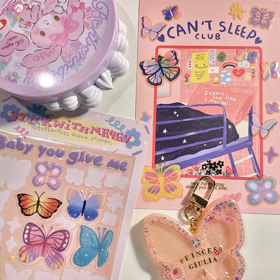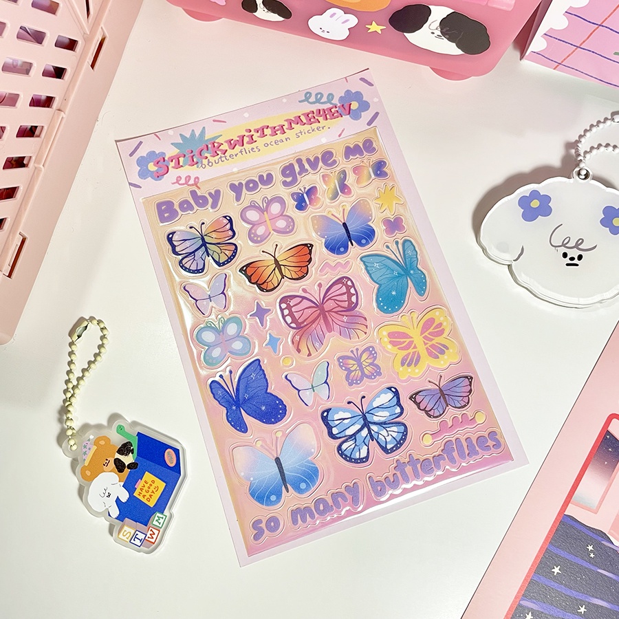 Butterfly ocean sticker สติกเกอร์ขอบใสเหลือบ ไซส์ A6 | Stickwithme4ev