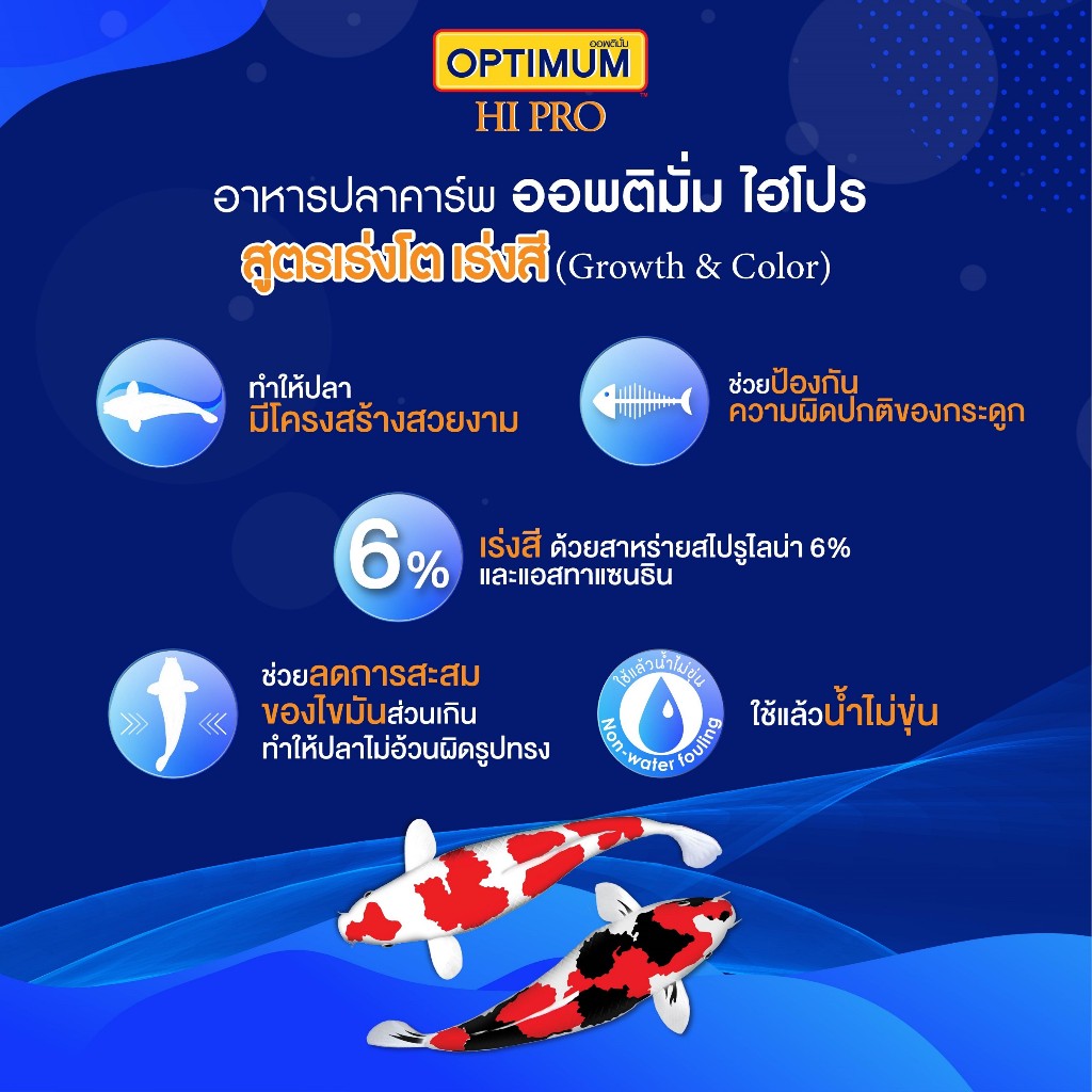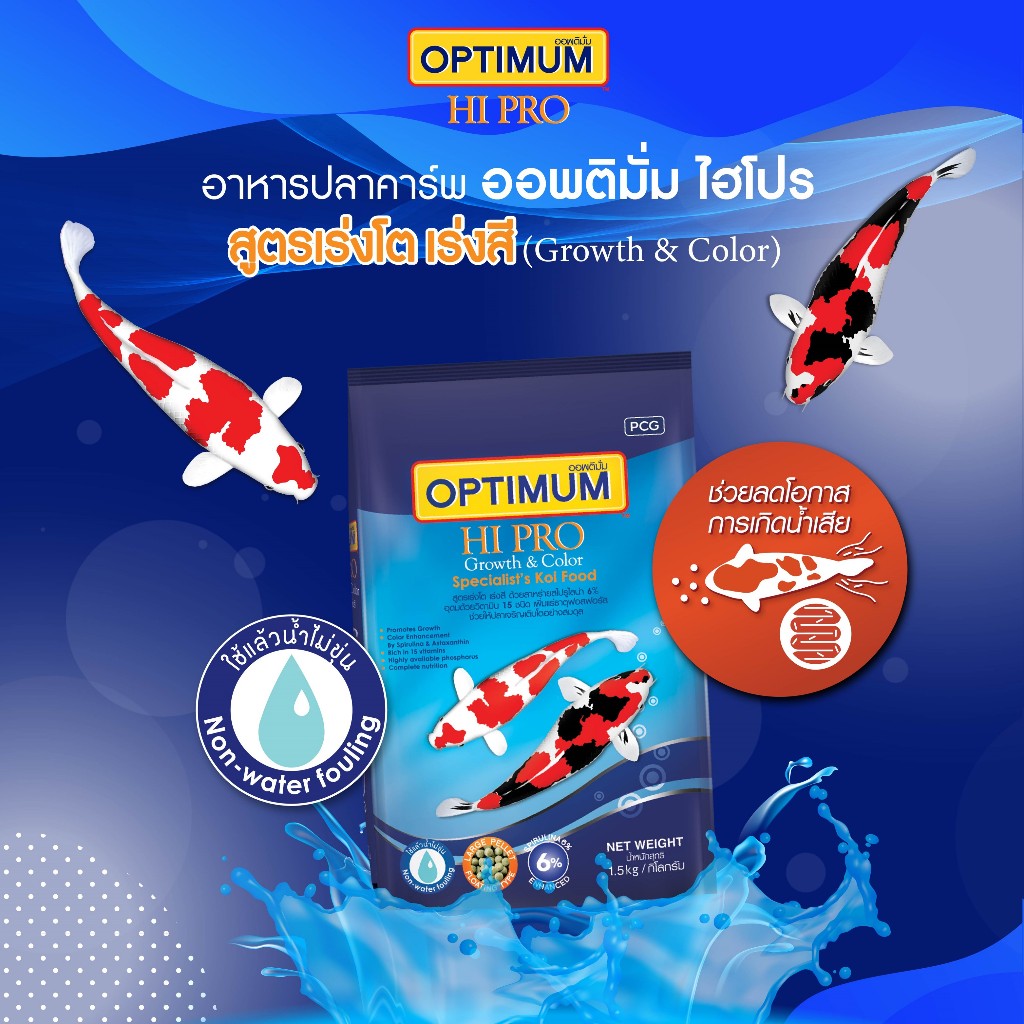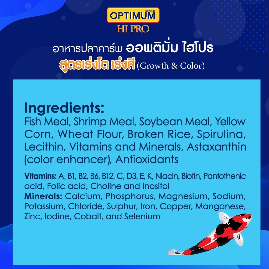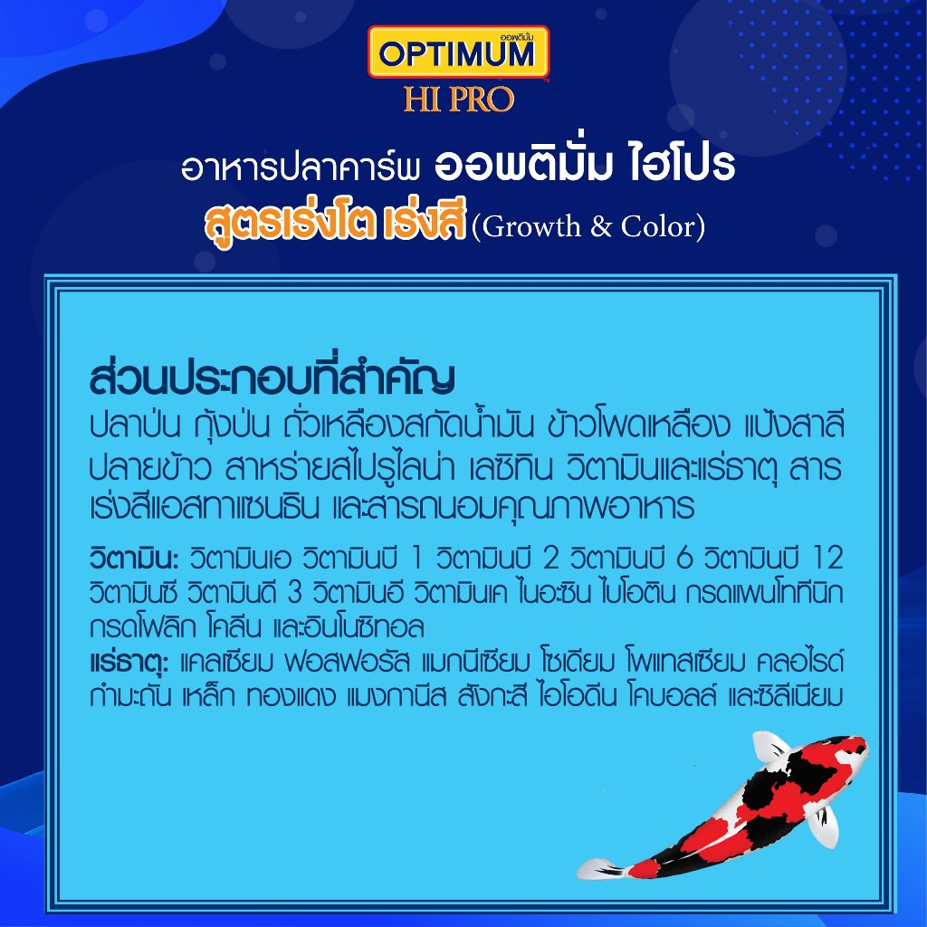 ออพติมั่ม ไฮโปร อาหารปลาคาร์พ Growth & Color (สูตรเร่งโต เร่งสี) ขนาด 15กก.