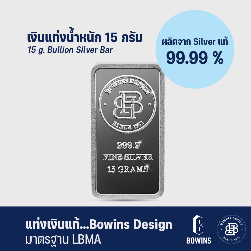 Bowins Design แท่งเงิน 15 กรัม 99.99% / เงินแท่งแท้ / 15 grams Bullion Silver Bar