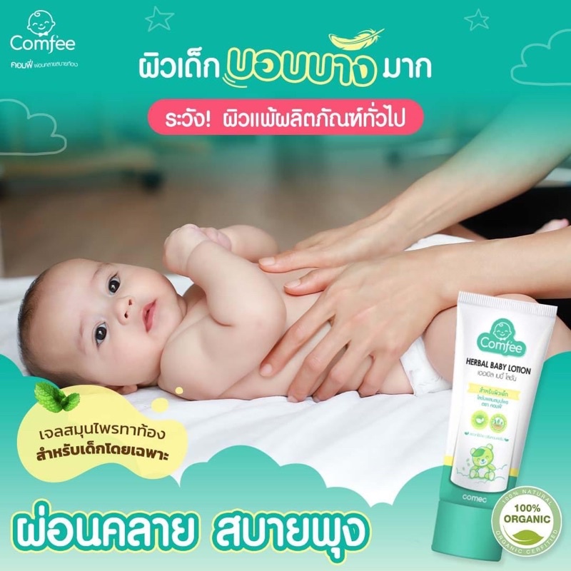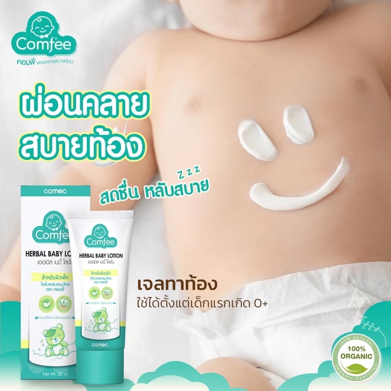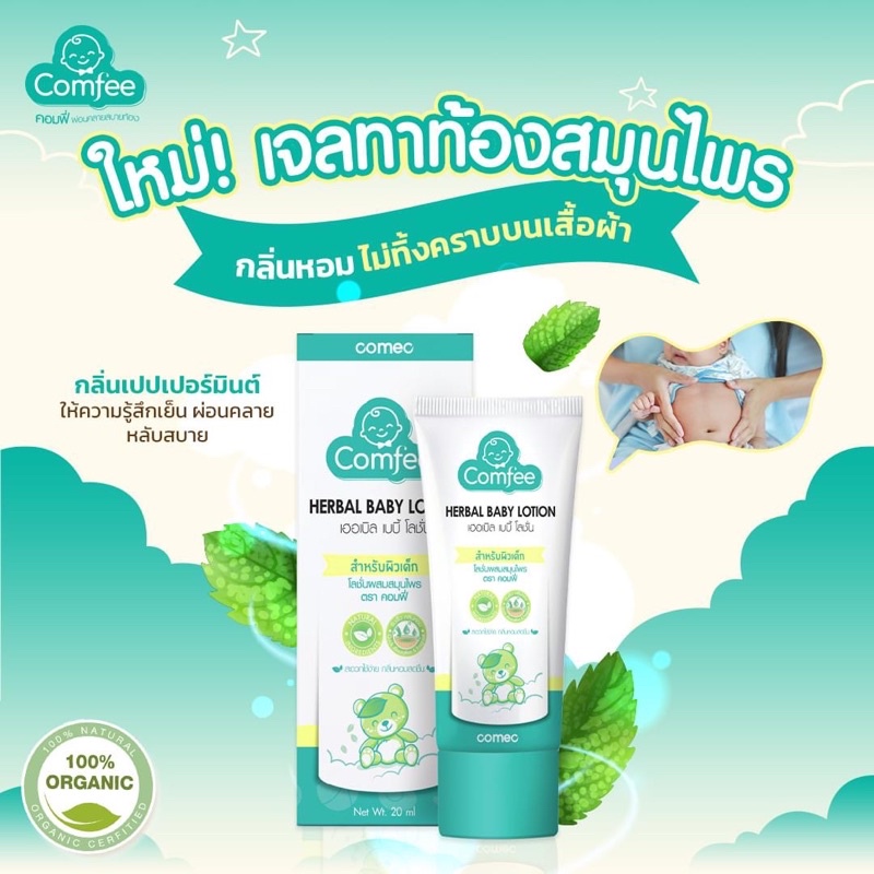 Comfee โลชั่นแก้ท้องอืด 20/50 ml [แพ็คเกจใหม่] ธรรมชาติ100% แก้ท้องอืด ท้องเฟ้อ herbal baby lotion คอมฟี่ สำหรับเด็กทารก