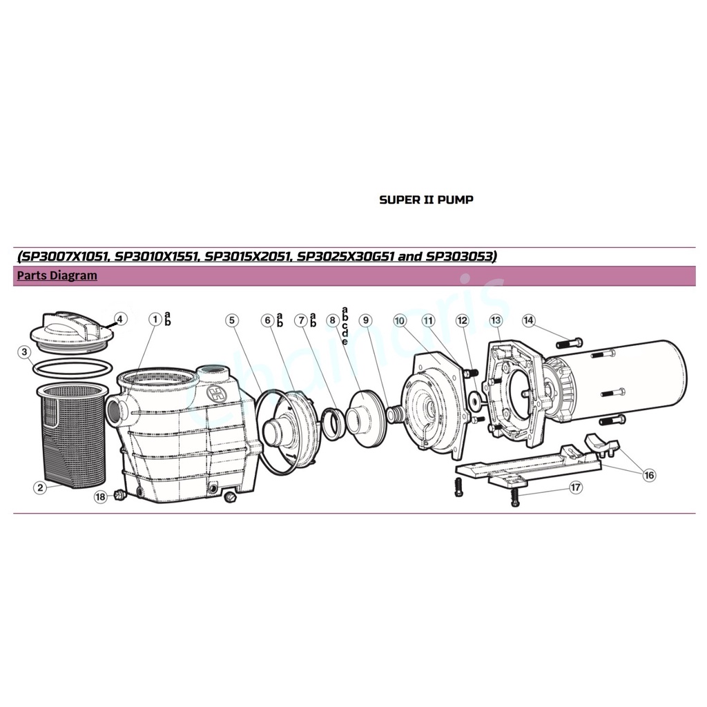 Hayward อะไหล่ปั้มสระว่ายน้ำ ใบพัดปั้ม ยี่ห้อ Hayward รุ่น Super II Pump 3 Hp. 3 Phase SPX3031C