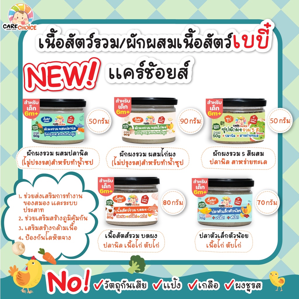 C999 เนื้อสัตว์บดผงเบบี๋ 12 ชนิดแคร์ช้อยส์ ไม่ปรุงแต่ง อาหารเด็ก 6 เดือนขึ้นไป อาหารเสริมเด็ก (กป)