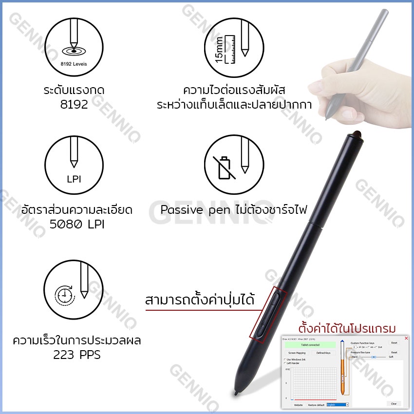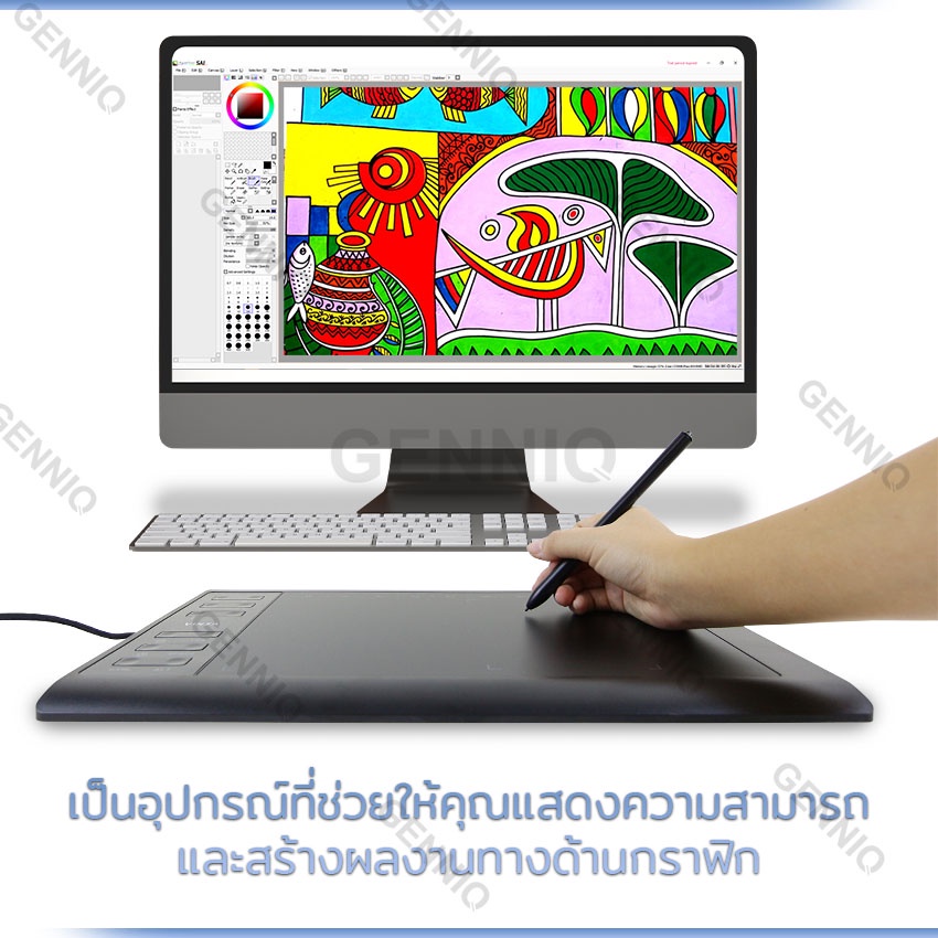 เม้าส์ปากกา เมาส์ปากกา แท็บเล็ตกราฟิก วาดรูป ขนาด 10x6 นิ้ว ติดตั้งง่าย อุปกรณ์ครบ ไม่ต้องชาร์จปากกา