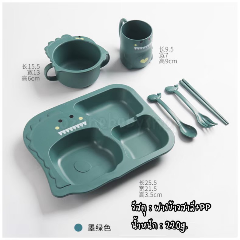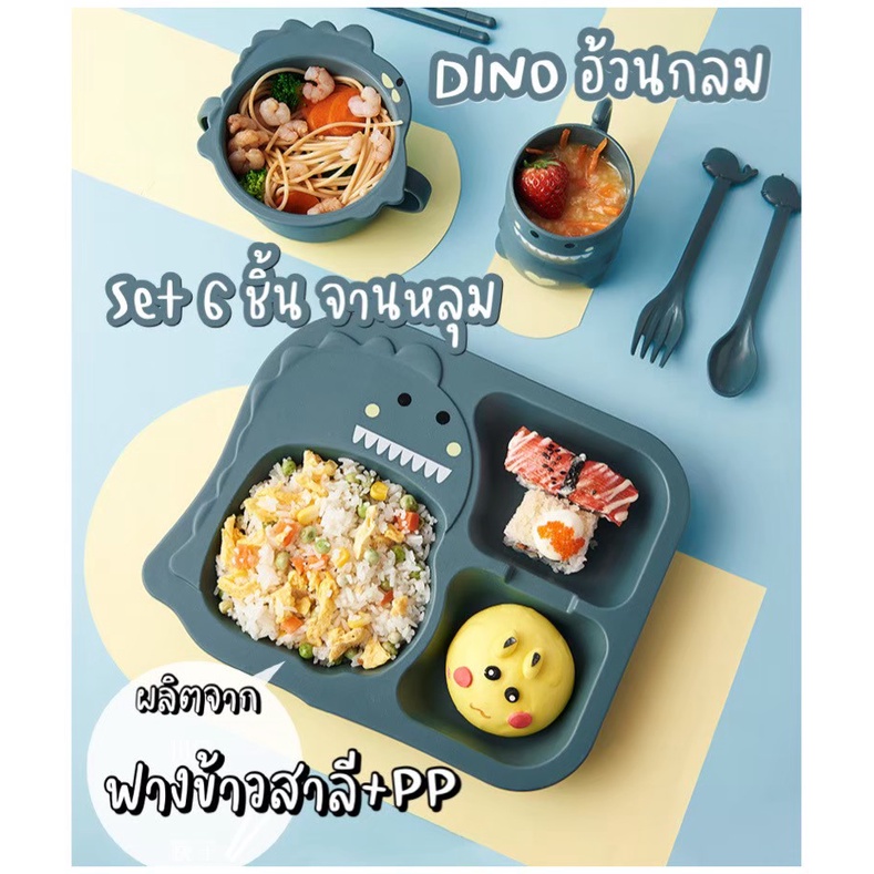 [ ส่งทุกวัน ]เซ็ตจานอาหารเด็กไดโนเสาร์ 5 ชิ้น ถาดข้าวเด็ก ทำจากฟางข้าวสาลี+พลาสติก ไร้สารอันตราย