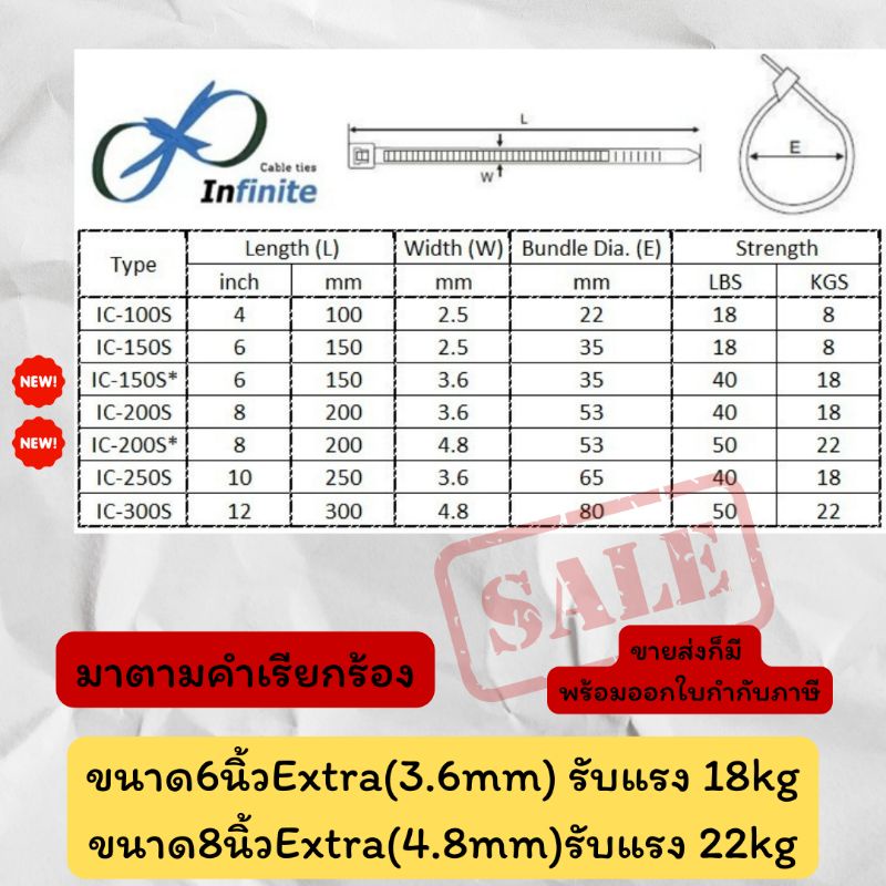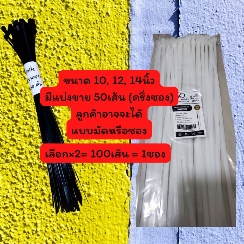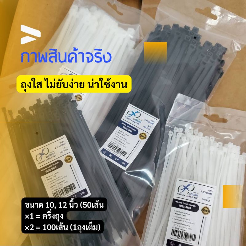 No.1คุณภาพ อินฟินิทเคเบิ้ลไทร์เกรดส่งออก 14/12/10/8/6/4นิ้ว แพค100เส้น ขาว/ดำ Cable tie หนวดกุ้ง สายรัดพลาสติก