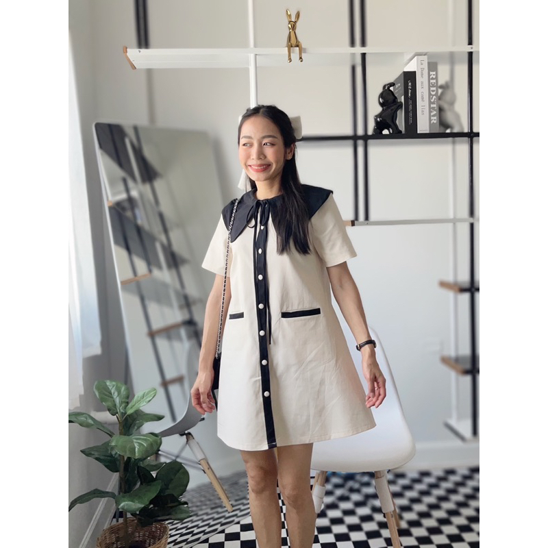 CHAWY พร้อมส่ง🥙🥟🍪 TWOTONE minimal dress C3234มินิเดรสสั้น มินิเดรสสั้นมินิมอล