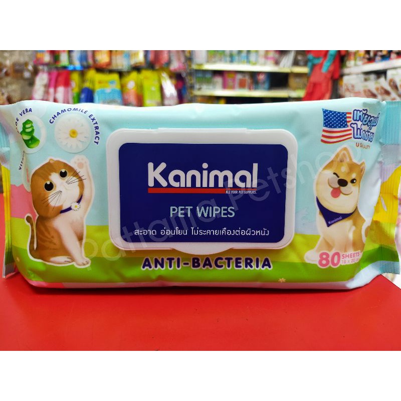 ( 1 ห่อ ) Kanimal ผ้าเปียก ทำความสะอาดสัตว์เลี้ยง 80 แผ่น