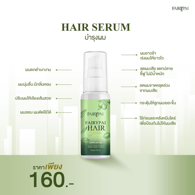 Fairypai Hair Serum แฟรี่ปายแฮร์เซรั่ม/บูสเตอร์คอลลาเจน ฟื้นฟูบำรุงผมเสียผมแห้งแตกปลายไม่มีน้ำหนักและเร่งผมยาวไว ใช้ดี แ