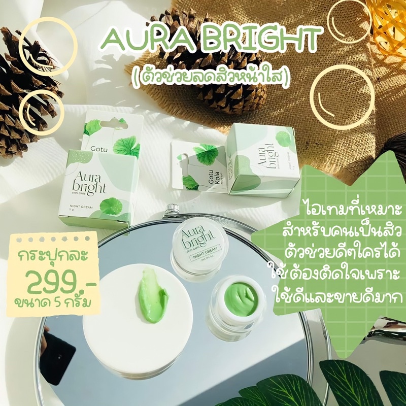 {ลด30%🥬🌼} ครีมเขียว ออร่าไบร์ท [ของแท้] ฟื้นฟูผิวเร่งด่วย ปรับผิวกระจ่างใส ลดสิวลดรอยดำ เห็นผลตั้งแต่กระปุกแรก !