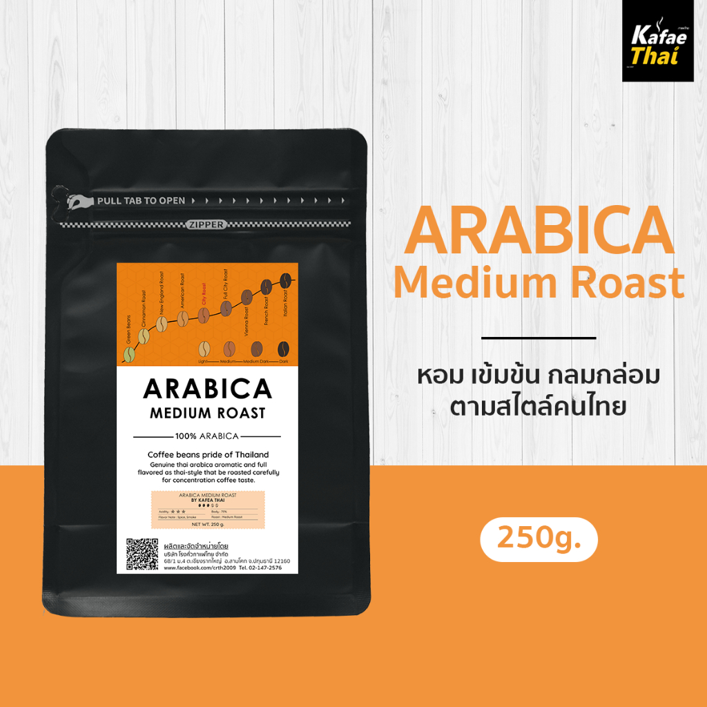 [ส่งฟรี] เมล็ดกาเเฟคั่ว Arabica Medium Roast อาราบิก้า 100% คั่วกลาง หอม กลมกล่อม ขนาด 250 กรัม