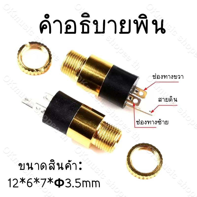 1pcs 30cm pj392 สายไฟต่อ หัวแจ๊ค AUX ตัวเมีย ปลั๊กซ็อกเก็ตเชื่อมต่อหูฟังสเตอริโอสีทอง pj 392 3.5 มม. สายAUXดี เสียงก้ดี