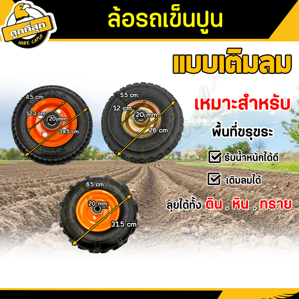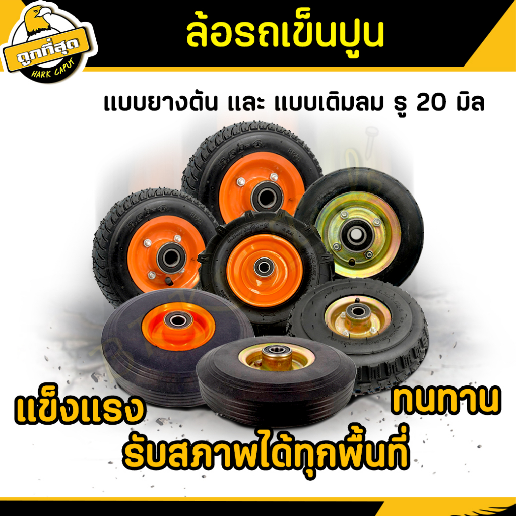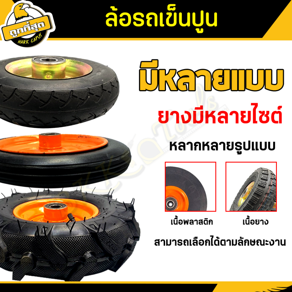 ล้อรถเข็นปูน (เติม/ตัน) ขนาด 8 10 12นิ้ว ลูกปืน6204 แกนเพลา 20 มม. ล้อยางตัน ล้อเติมลม (ราคาต่อ1ล้อ)