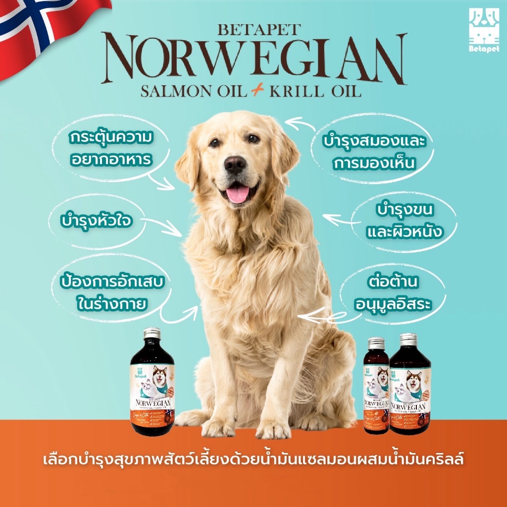 ( ‼️ ส่งไวมาก ‼️ ) BETAPET น้ำมันปลาแซลมอนแท้ 100% Premium จาก Norway สำหรับสุนัขและแมว บำรุงขนผิว ช่วยให้เจริญอาหาร