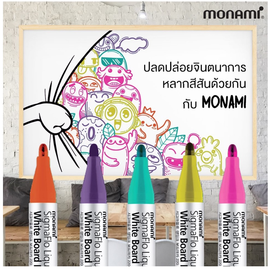 Monami ปากกาไว์บอร์ดสี 220 ไร้สารพิษ ไร้กลิ่นฉุน มี 12สี ปากกาไวท์บอร์ด SigmaFlo Liquid WHITE BOARD MARKER โมนามิ 220