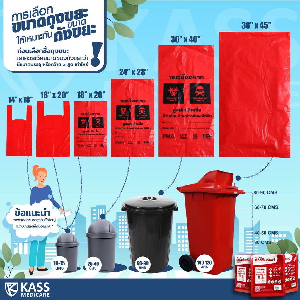 ถุงแดง ถุงขยะติดเชื้อ ขนาด 30x40 นิ้ว (แพ็ค 15 ชิ้น) เหนียว เก็บกลิ่น ถุงขยะมูลฝอยติดเชื้อ มีแบบพิมพ์ และ แบบไม่พิมพ์