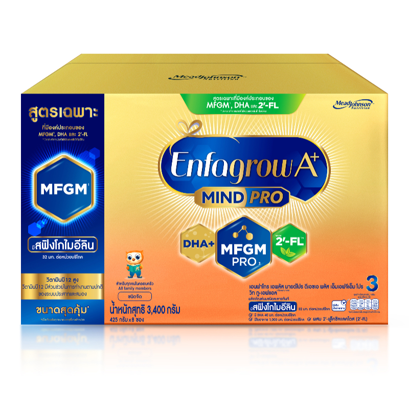 นมผง เอนฟาโกร เอพลัส มายด์โปร สูตร3 ชนิดจืด (3400 กรัม) x2 กล่อง Enfagrow A+ MindPro Stage3 (3400 g) x2 packs