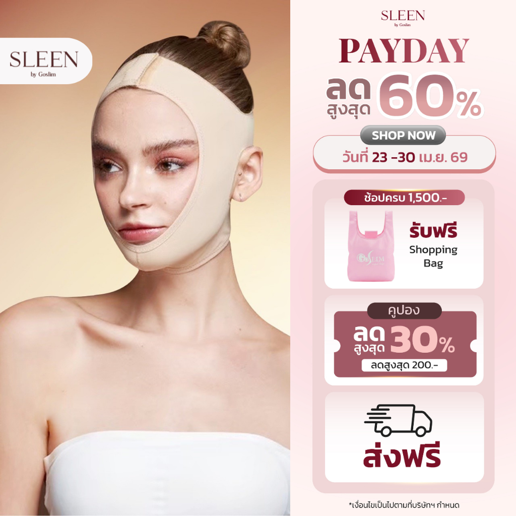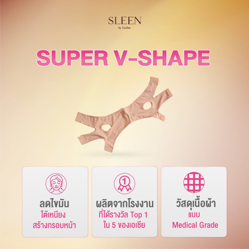 SLEEN by Goslim แผ่นรัดหน้าเรียว SUPER V-SHAPE แผ่นรัดกระชับเหนียงและหน้า ยกกระชับใบหน้า