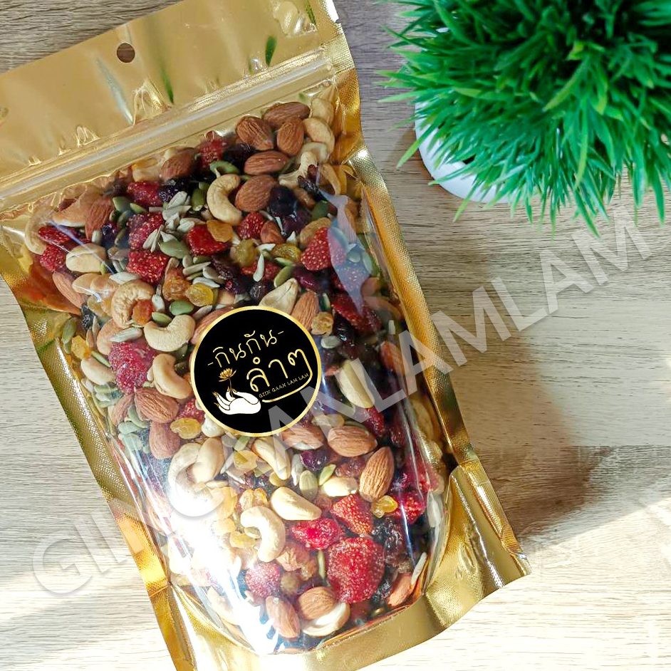 ธัญพืชรวม อบ พร้อมทาน 8 ชนิด ขนาด 500g เม็ดมะม่วง อัลมอนด์ เมล็ดฟักทอง เมล็ดทานตะวัน สตอเบอรี่ แครนเบอรี่ ลูกเกด