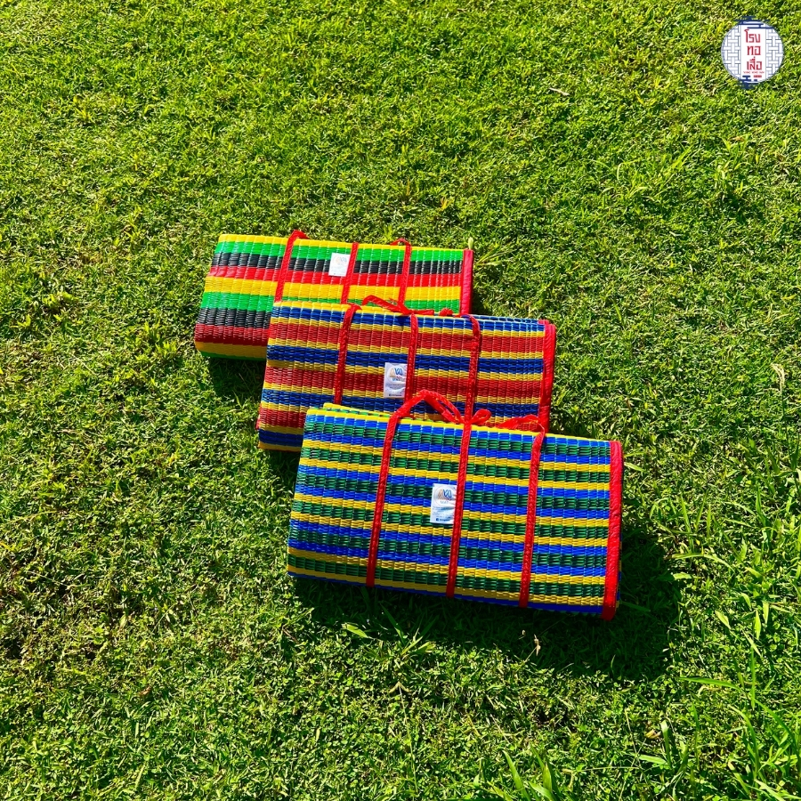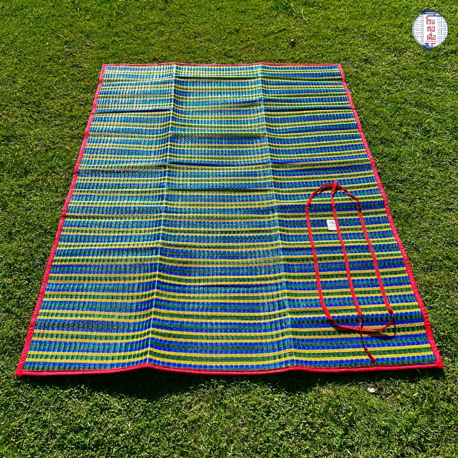 เสื่อพลาสติกพับได้ มีหูหิ้ว พกพาสะดวก คละสี คุณภาพดี ป้องกันไรฝุ่น (ขนาด135x180ซม.) - โรงทอเสื่อ