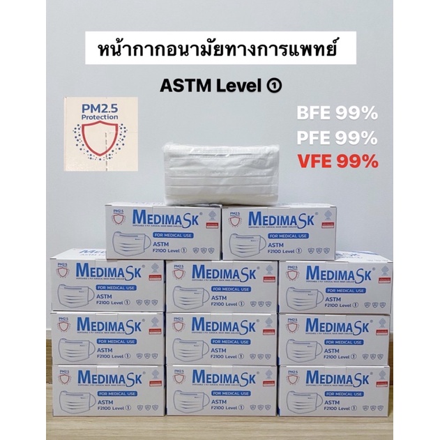 หน้ากากอนามัยทางการแพทย์ 3ชั้น Medimask แท้💯 | เมดดิแมสก์ 50 ชิ้นต่อกล่อง ผลิตในไทย