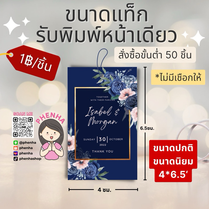 ป้ายห้อยของชำร่วย ป้ายแท็ก แต่งงาน ไม่มีเชือกให้