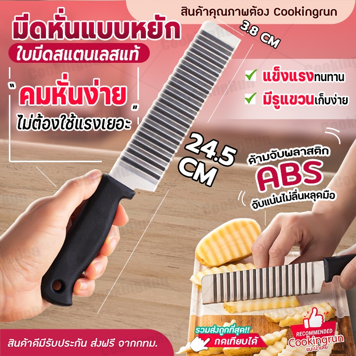 🔔ไลฟ์24ชม.ลด100.-🔔 มีดหั่นแบบหยัก Cookingrun มีดหยักสแตนเลส มีดหั่นมันฝรั่ง สำหรับหั่นผักและผลไม้ มีดหั่นเฟรนฟราย 🚚