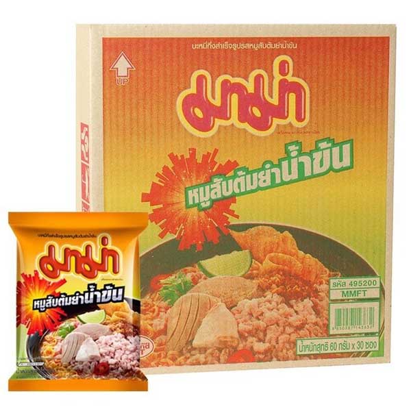 มาม่า บะหมี่กึ่งสำเร็จรูป กล่อง 30ซอง [หมูสับ,ต้มยำกุ้ง,หมูต้มยำน้ำข้น,ต้มยำน้ำข้น,หมูต้มยำ,เย็นตาโฟหม้อไฟ] ซอง60กรัม