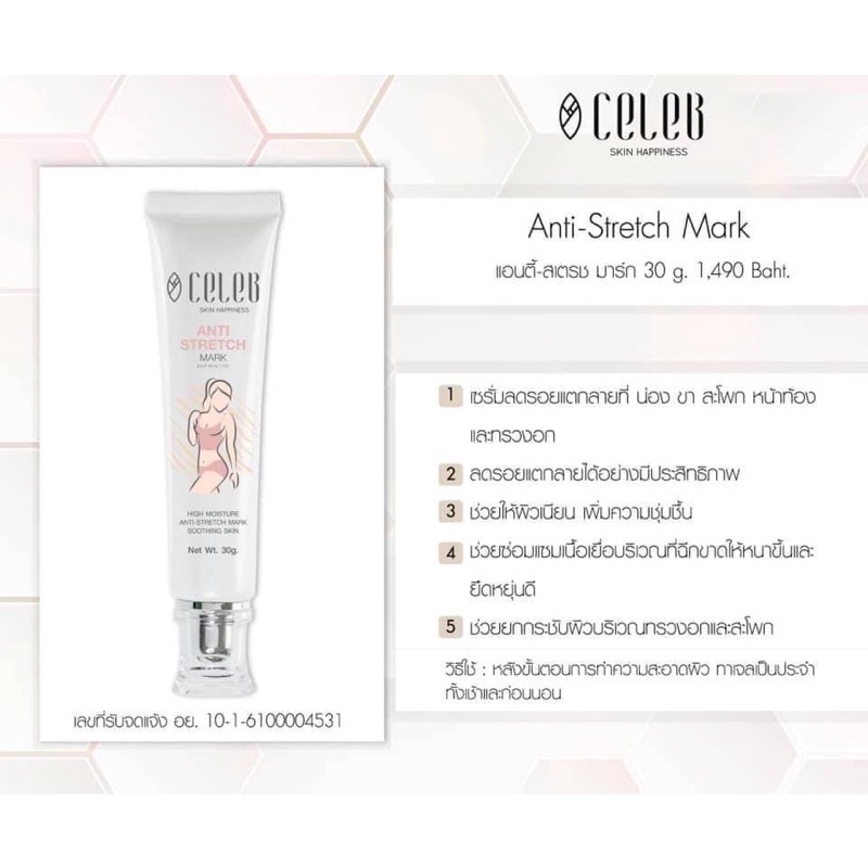 CelebSkin Anti-Stretch Mark ครีมทาผิว ลดรอยแตกที่น่อง ขา สะโพก หน้าท้อง ช่วยให้ผิวเนียน