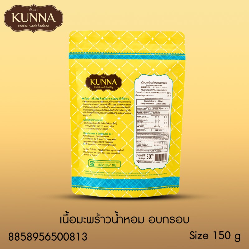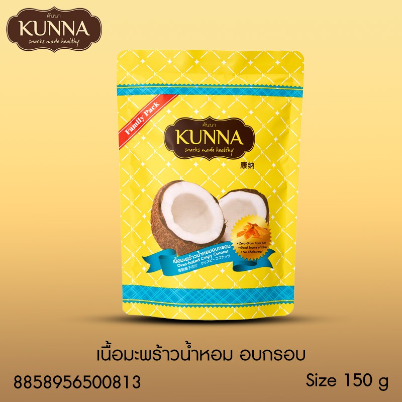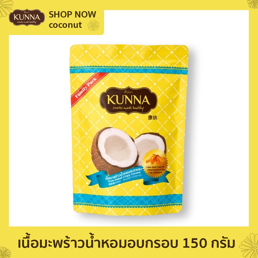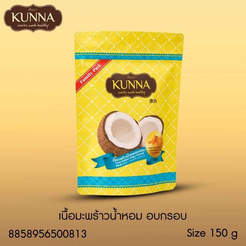 เนื้อมะพร้าวน้ำหอมอบกรอบ 150 กรัม 1 ซอง แบรนด์ KUNNA (คันนา)