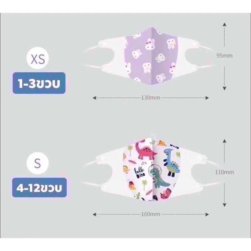 หน้ากากอนามัยเด็ก 3D กันฝุ่นและเชื้อไวรัส อายุ 1-3 ปี 4-12 ปี