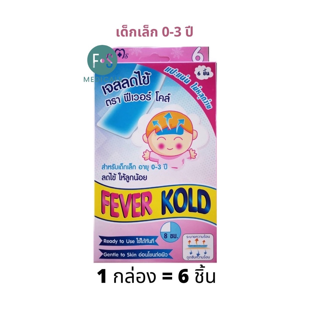 ล็อตใหม่!! FEVER KOLD ฟีเวอร์ โคล์ แผ่นเจลลดไข้ แน่น ไม่หลุดง่าย เด็กเล็ก (0-3 ปี) และ เด็กโต (3 ปี+) (1 กล่อง = 6 ชิ้น)