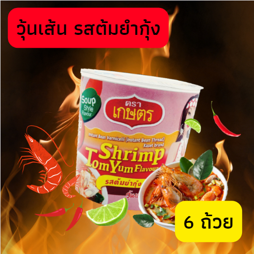 ตราเกษตร วุ้นเส้นคัพ รสต้มยำกุ้ง 35 กรัม ( 6 ถ้วย)