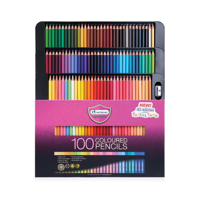 Master Art สีไม้ 100 สี รุ่นใหม่ (แท่งยาว) เฉดสีธรรมชาติ - 1 กล่อง