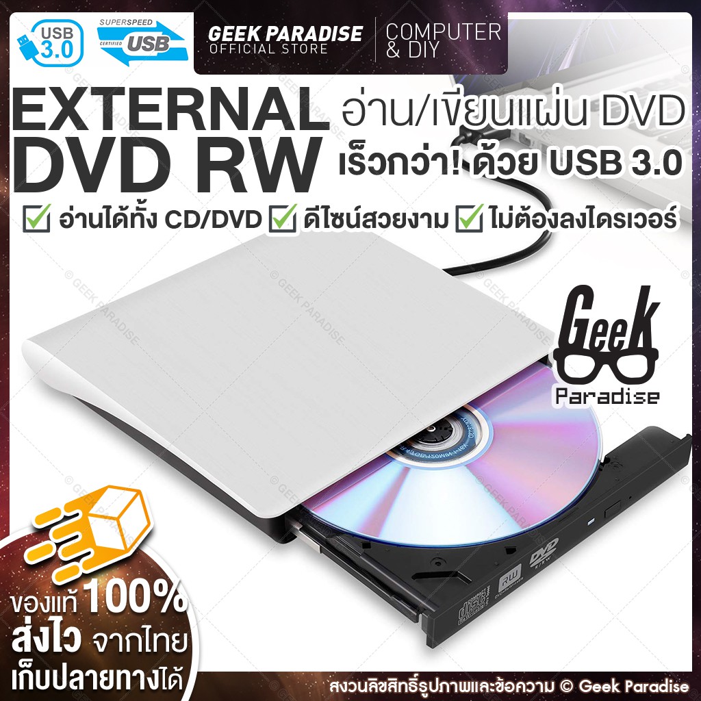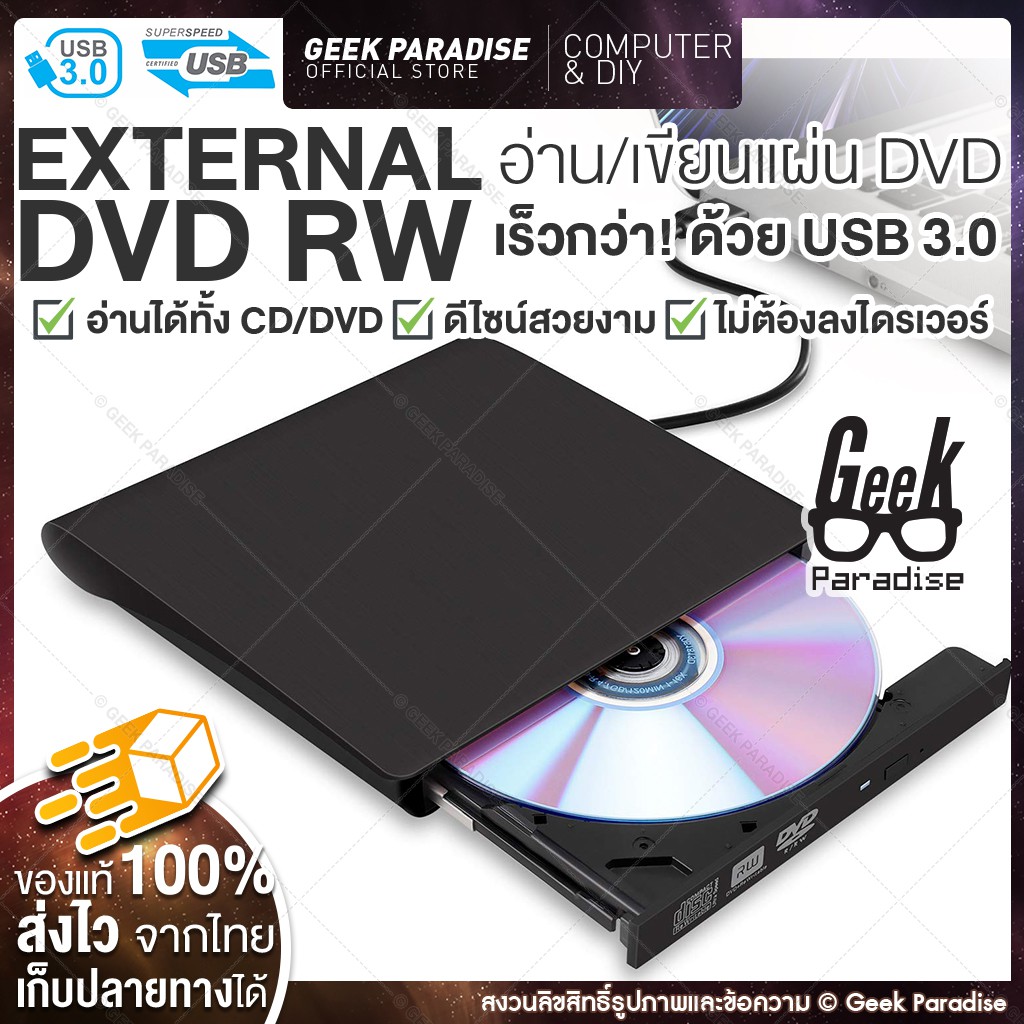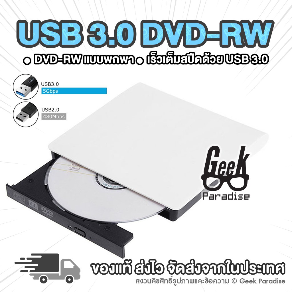 ใหม่ มีรับประกัน! DVD Writer External ดีวีดี พกพา ส่งข้อมูลเต็มสปีดด้วย USB 3.0 DVD ภายนอก External DVD-RW