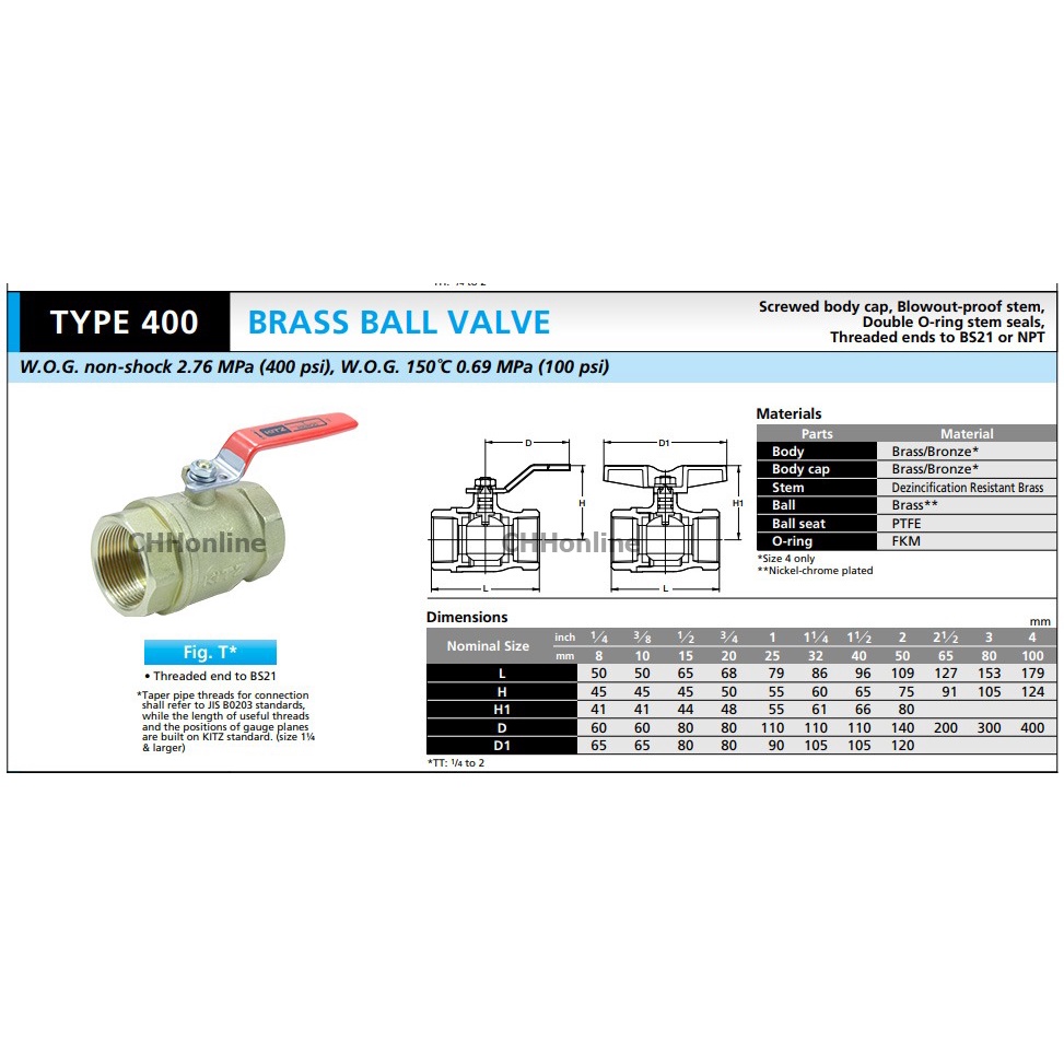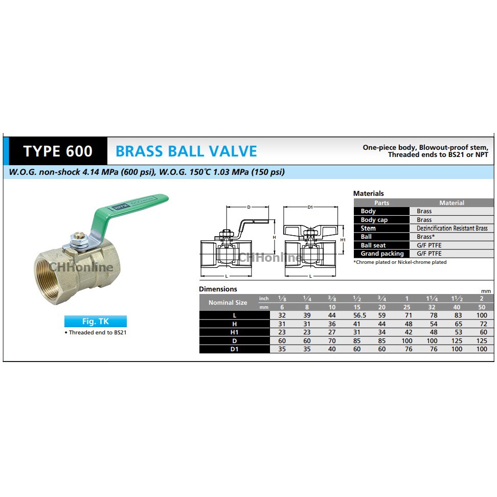 KITZ บอลวาล์ว ทองเหลือง รุ่น TK (ด้ามเขียว) และ T (ด้ามส้ม) ขนาด 1/2-1 นิ้ว บอลวาล์วทองเหลือง
