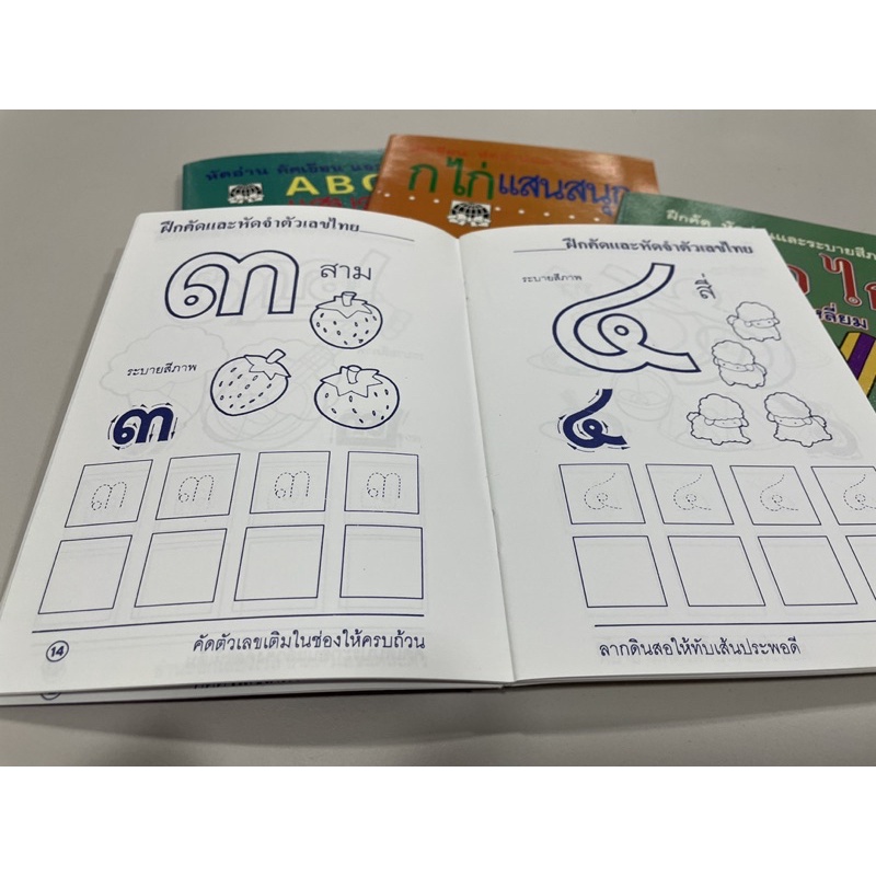 kidtuk แบบฝึกคัดลายมือ ก ไก่ ABC ตัวเลข 123 ฝึกคัดลายมือ ฝึกเขียนไทย สมุดคัดลายมือ สินค้าใหม่จากโรงงาน มีตำหนิเล็กน้อย