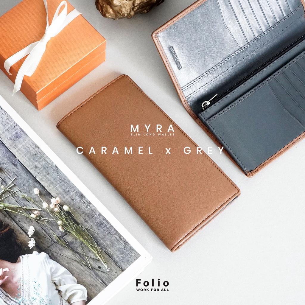 FOLIO : Myra Slim Long Wallet กระเป๋าสตางค์ใบยาว ใส่บัตร 18 ช่อง ผลิตจากหนังแพะ ปั้มชื่อฟรี-18653