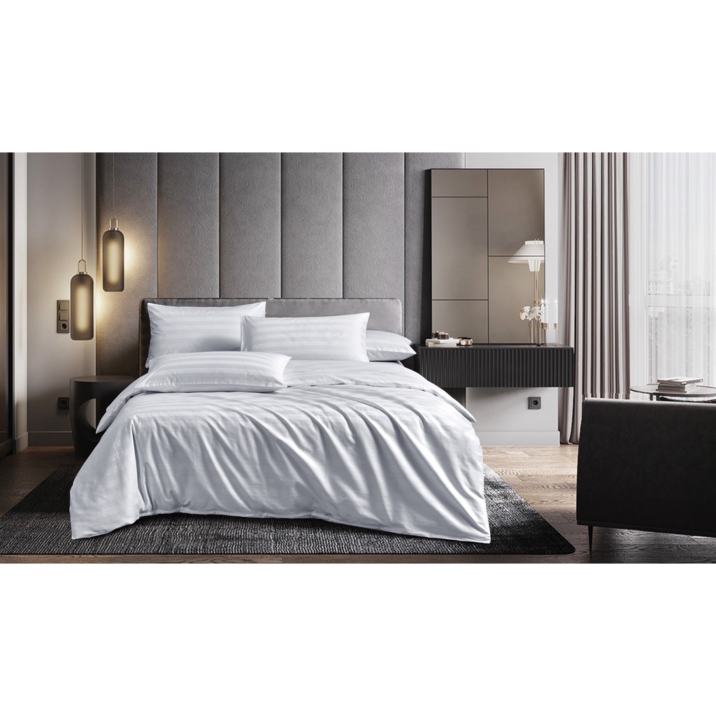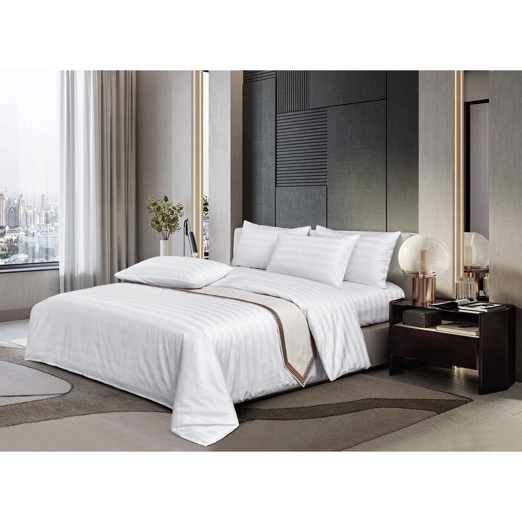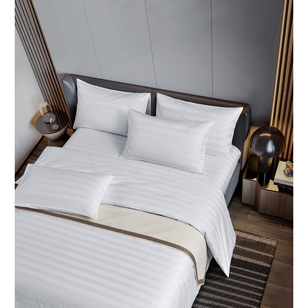 ibed ปลอกหมอนโรงแรม 5 ดาว สีขาวลายริ้ว Cotton 100% 500 เส้นด้าย