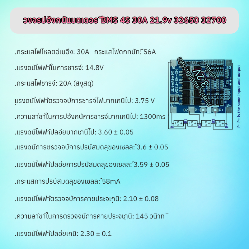 【พร้อมส่ง】วงจรป้องกันแบตเตอรี่ BMS 4S 30A LiFePO4 3.2V 32650 บอร์ดโมดูลป้องกันแบตเตอรี่ลิเธียม แบตเตอรี่ลิเธียมฟอสเฟต 6s