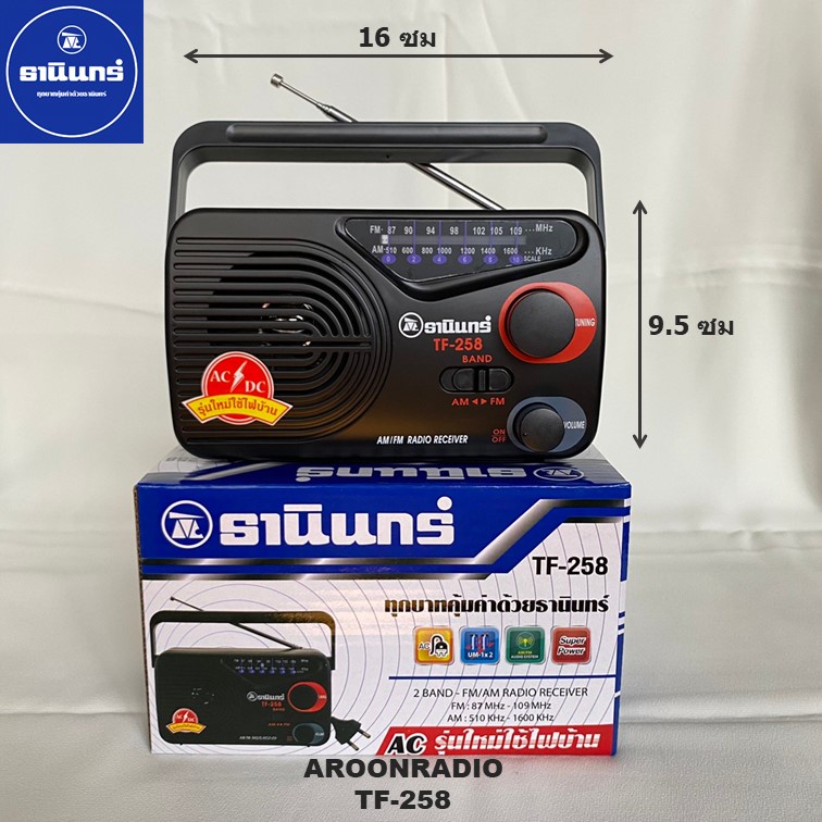 วิทยุธานินทร์ของแท้100% TANIN TF-258 FM/AM ถ่าน/เสียบไฟบ้าน