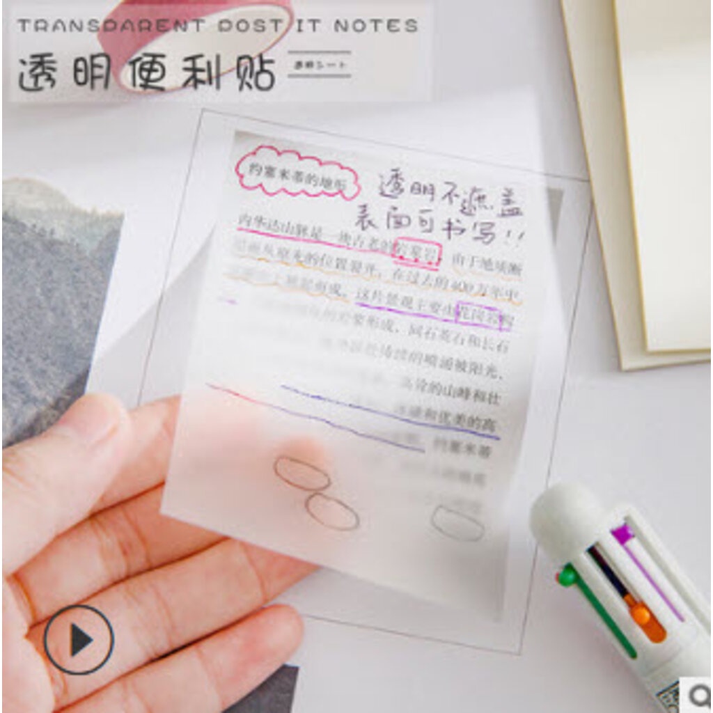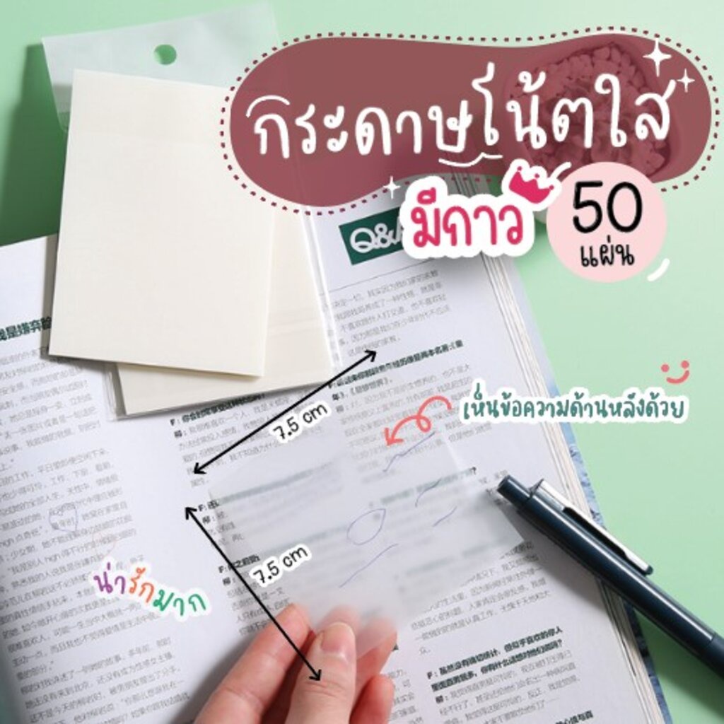 Ohmynote กระดาษโน้ตแบบมีกาว ใส กันน้ำ หนา 50 แผ่น