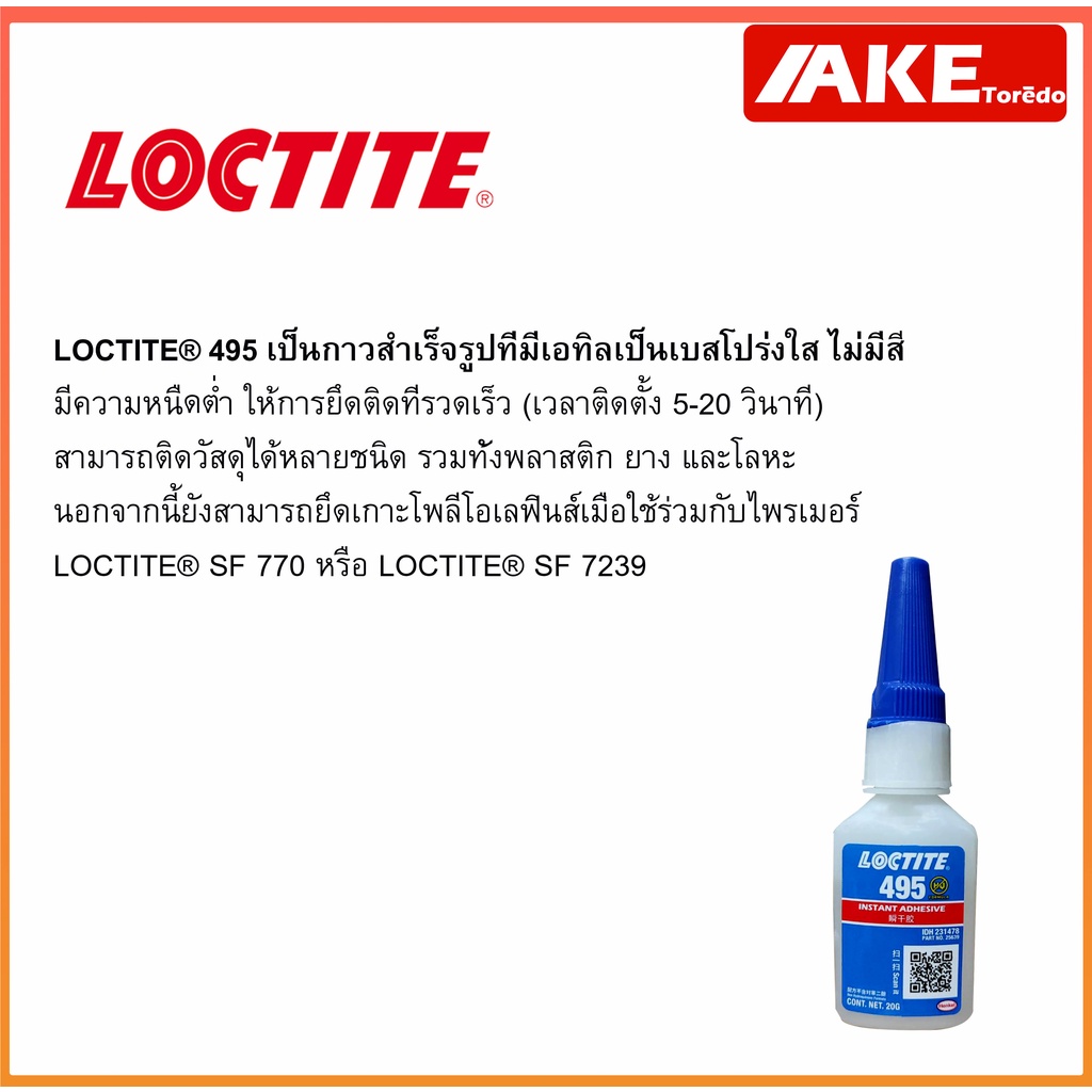 LOCTITE 495 ( ล็อคไทท์ ) SUPER BONDER INSTANT ADHESIVE กาวร้อน CA กาวเอนกประสงค์ กาวแห้งเร็ว พลาสติก ยาง และโลหะ