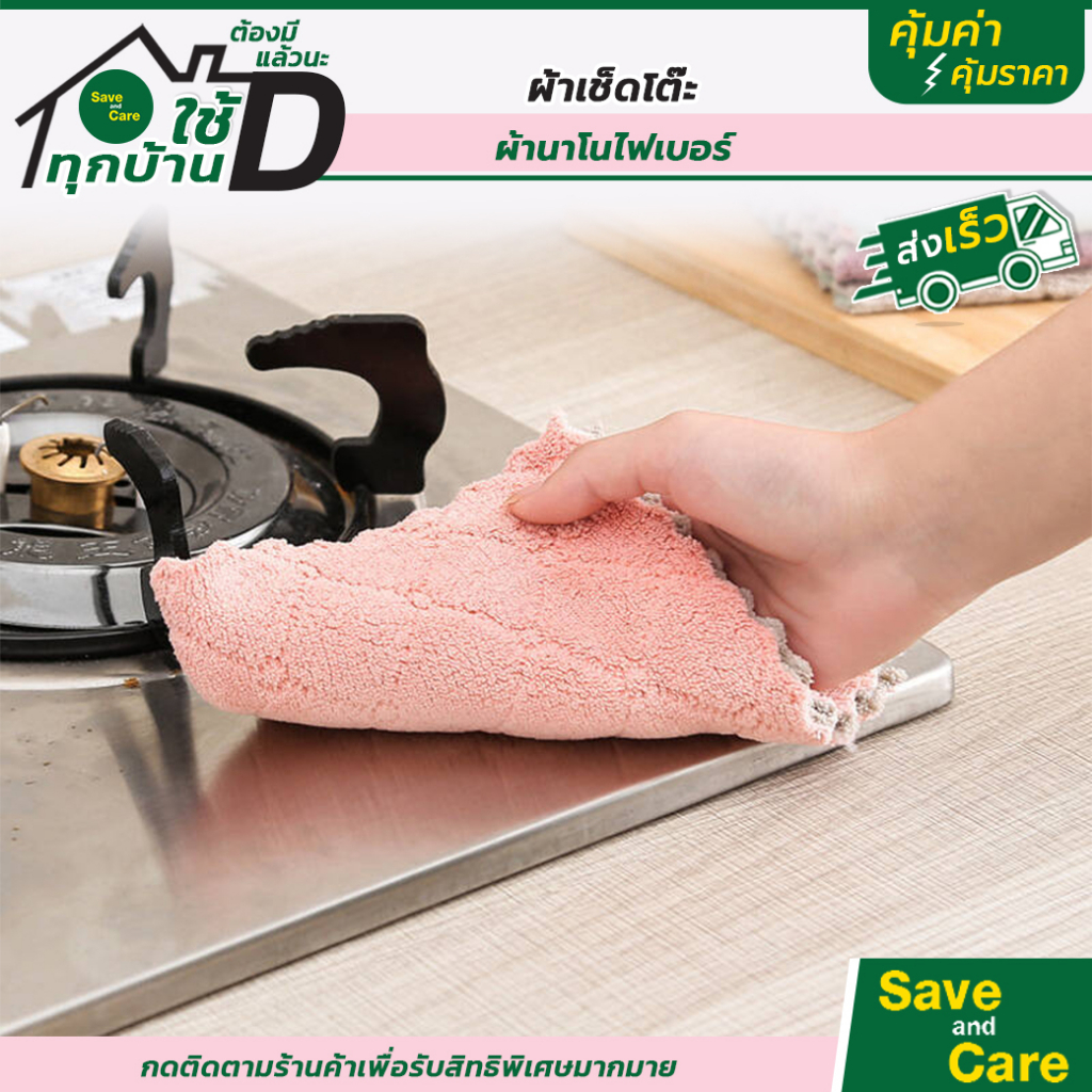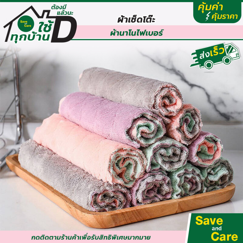 ผ้าเช็ดโต๊ะ เช็ดจาน ทำความสะอาด อเนกประสงค์ คละสี ซึมซับน้ำได้ดี แห้งไว ไม่เหม็นอับ saveandcare