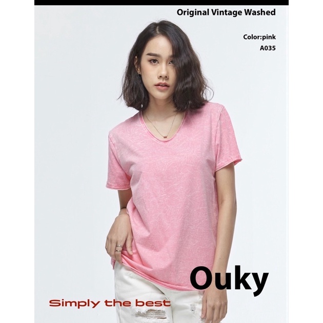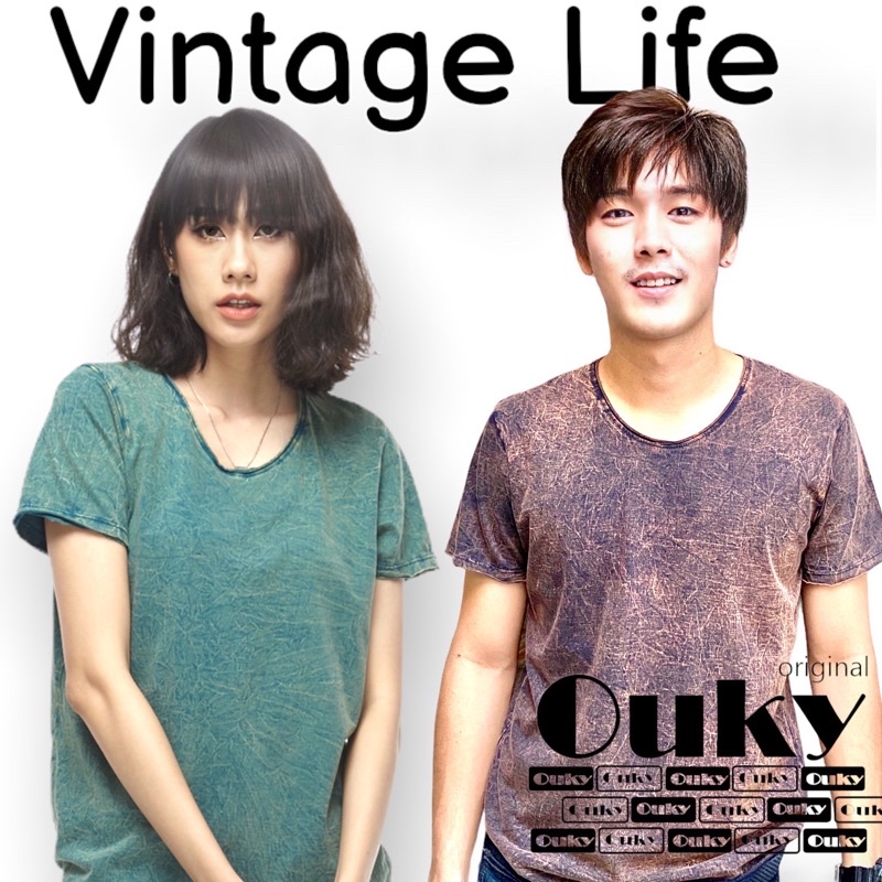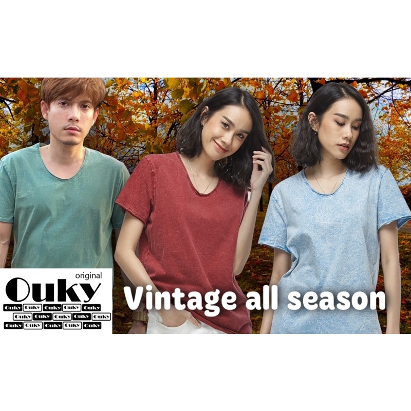 OUKY ผ้าฟอก Cotton100% เสือยืด เสื้อแนววินเทจ ไม่ต้องรีด ซักอบเครื่องได้ ไม่ยืด ไม่หด สีไม่ตก