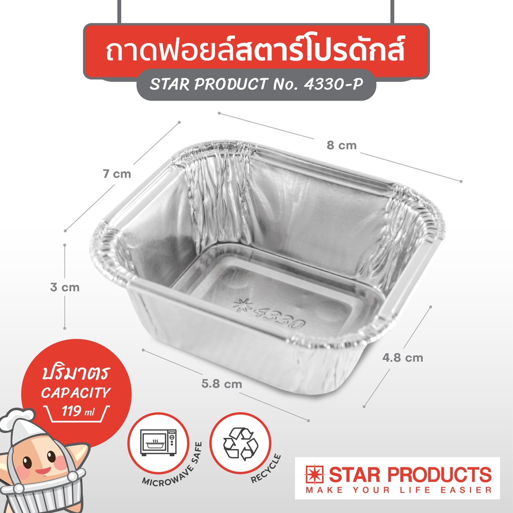 ถาดฟอยล์ ถ้วยฟอยล์ 4330-L แพ็คสุดคุ้ม มีฝา 50 ชุด/แพ็ค สตาร์โปรดักส์