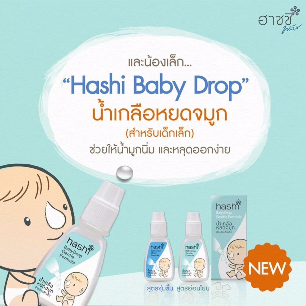 Hashi Baby Drop 4 ML น้ำเกลือหยดจมูก สำหรับเด็กเล็ก ช่วยให้น้ำมูกนิ่ม และสูดออกง่าย