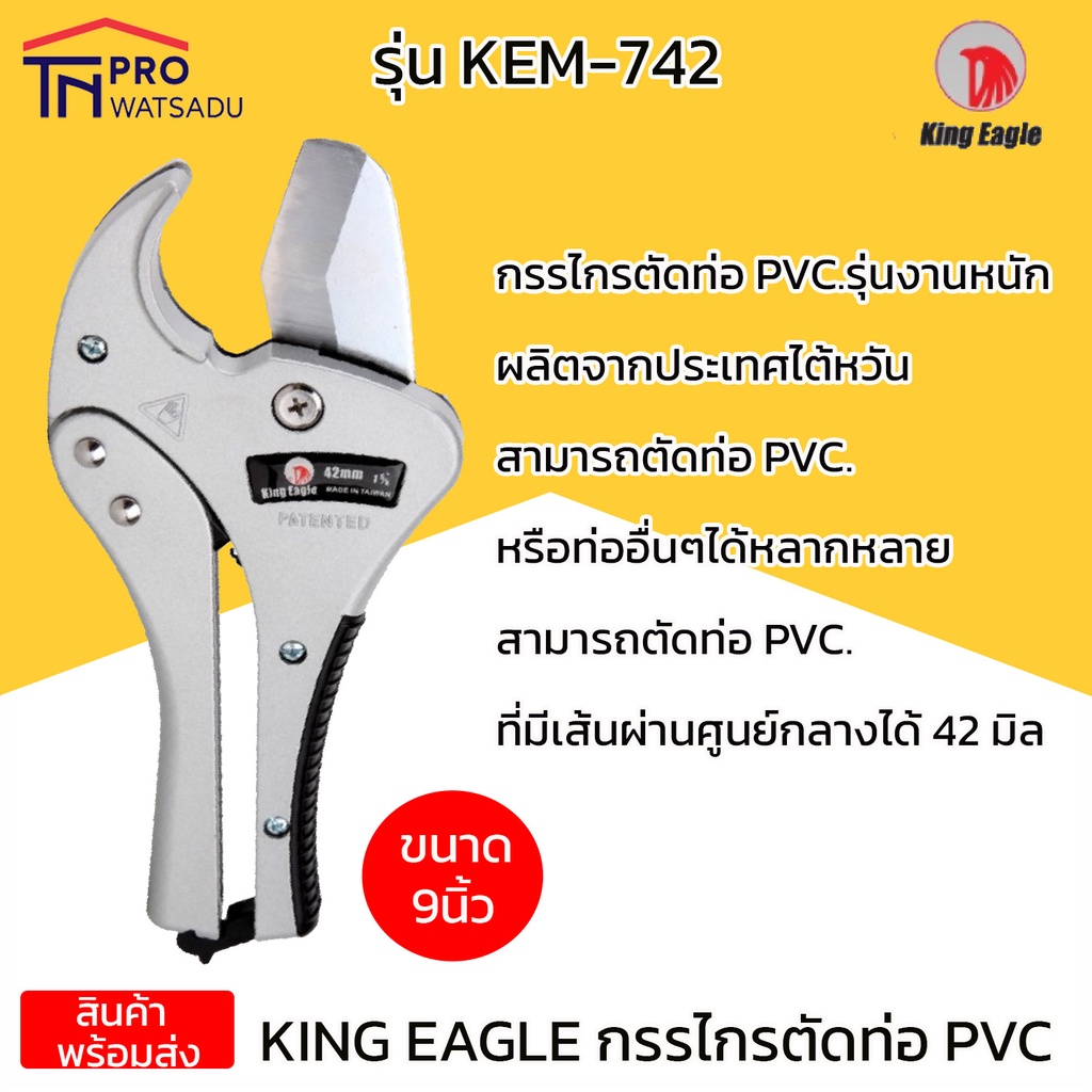 KING EAGLE กรรไกรตัดท่อ PVC รุ่นเฮพวี่ ตัดท่อ ตัดพีวีซี งานหนัก ตัดได้ 42 มิล รุ่น KE-742 ตราอีเกิ้ลวัน